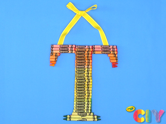To create Crayon Letter Decoration: Draw outline of initial on cardstock and cut out.