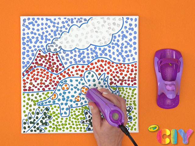 Hold Crayon Melter upright and press to canvas, creating dots in the open areas of the design until filled. Cool for 5 minutes.