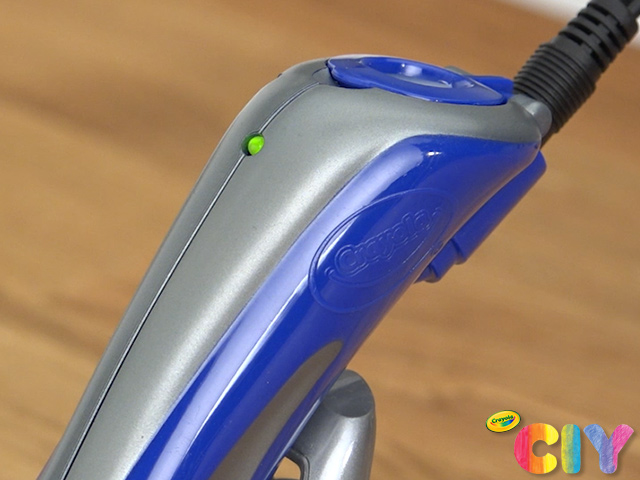 Ask an adult to plug Crayon Melter into a power source. When red light on Crayon Melter turns green, the crayons have melted and unit is ready.