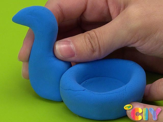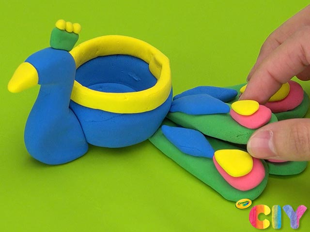 Shape peacock neck and head with Model Magic. Press against side of bowl to connect.