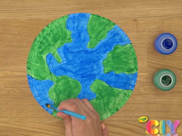 Sketch globe on bottom side of paper plate.