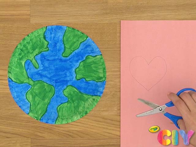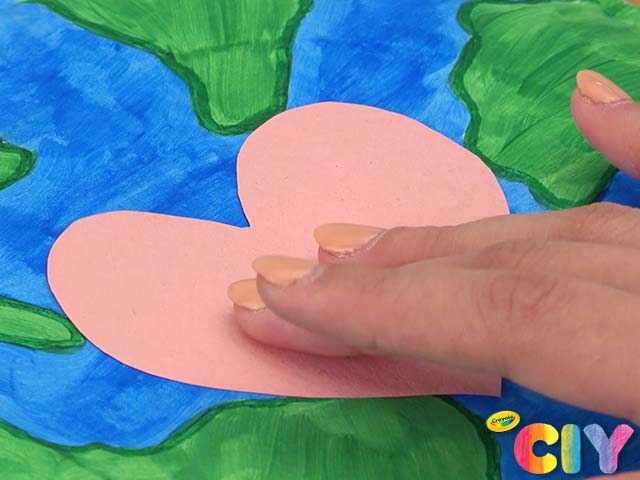 Glue heart to center of globe.