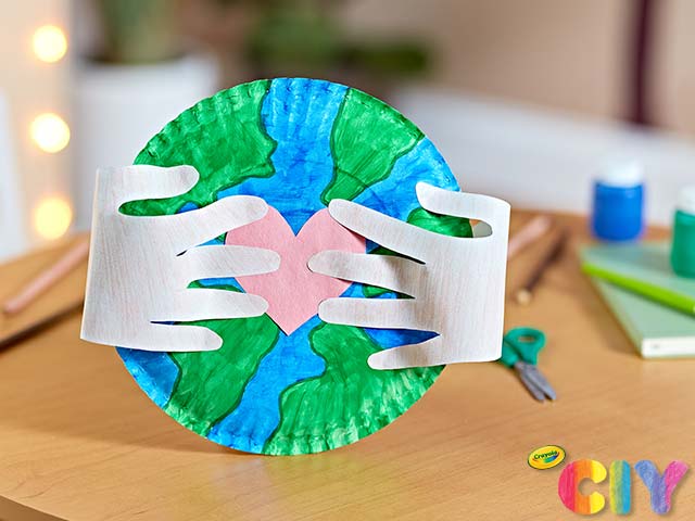 Go planet, it's your Earth Day! This upcycled Earth Day craft reuses a paper plate to make a huggable work of art.