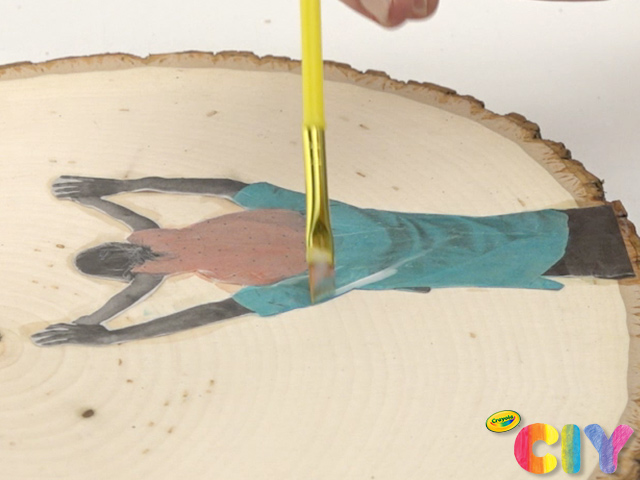 Apply glue mixture to back of photo and place on plaque. Use paint brush and additional glue mixture on front to seal edges.
