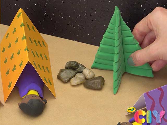 Happy campers! Set up & play with a DIY campsite made from easy-to-use Crayola Model Magic & other supplies.