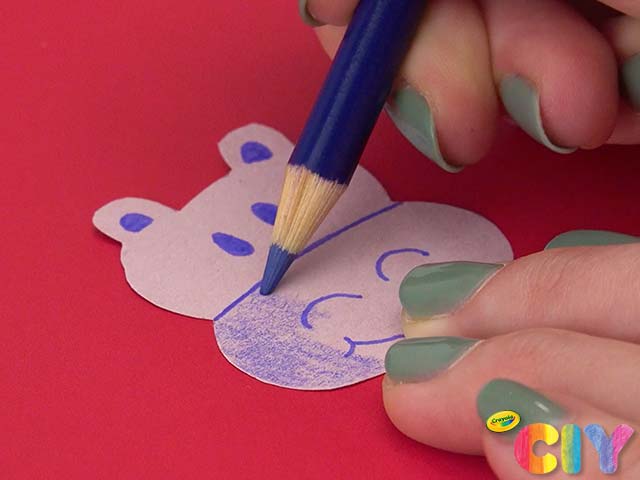 Add details to hippopotamus with gel pens and colored pencils.