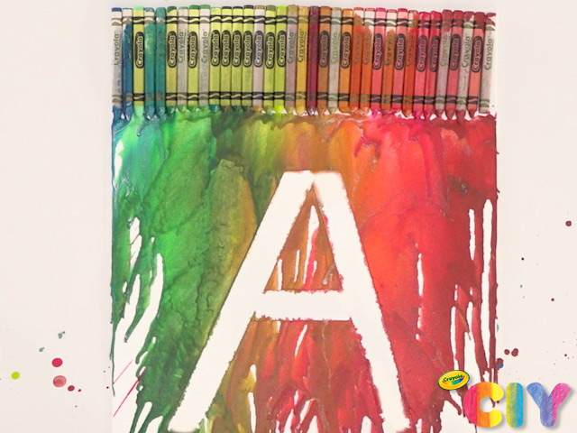 Create crayon melted art with this personalized canvas craft. Put your first initial (or your recipient’s!) on this colorful DIY melted crayon project.