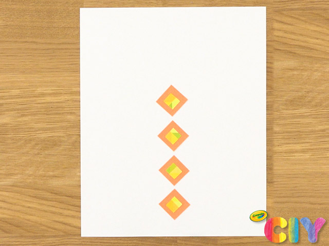 Orient squares as diamonds. Glue and stack vertically on plain cardstock.