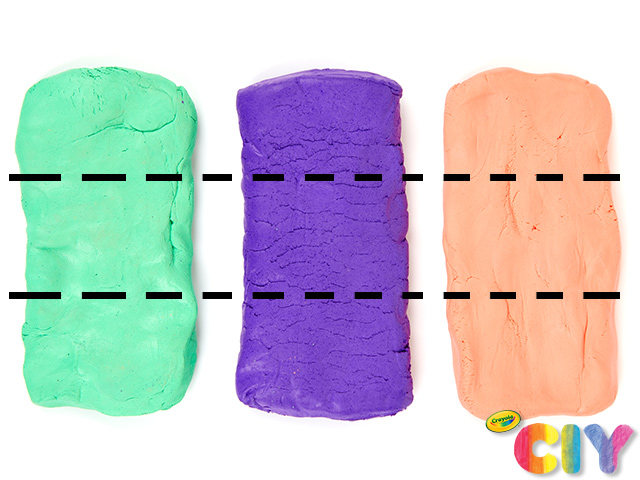 Unwrap each pack of air dry clay and divide into 3 pieces.
