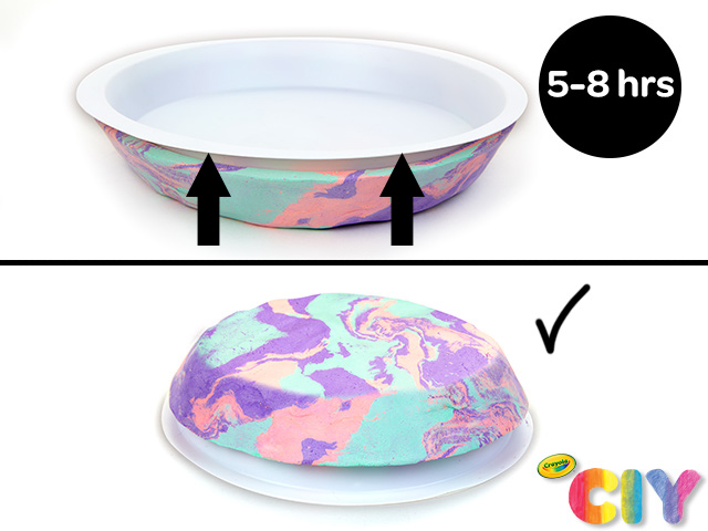 Every 5–8 hours, gently peel the edges of the mold away from the clay. Do not try to pull clay and mold apart – clay will release from mold when fully dry.