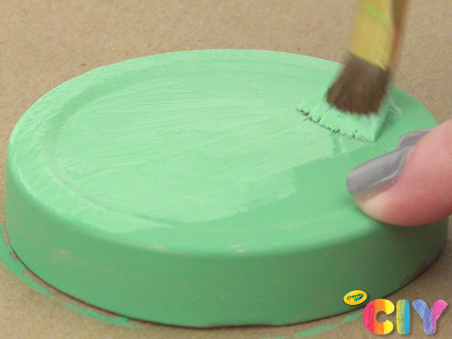 • We mixed white, yellow, and blue acrylic paint to make green. Choose any color you desire for the lid.