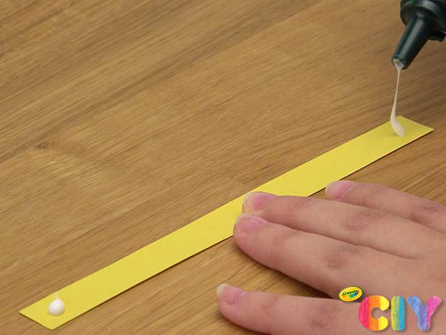 Cut piece of construction paper 1”H and use width of paper plate as guide for length. Glue to front of paper plate, then flip upside down.