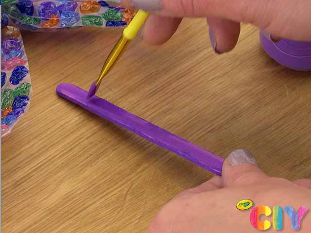 Cover craft stick with paint. Dry 1–2 hours. Add second coat. Dry 1–2 hours.