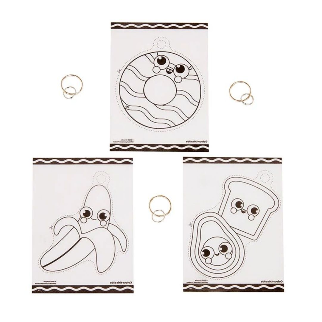 • Fantastico set per scoprire la shrink art e creare portachiavi a forma di adorabili personaggi foodie! Il materiale plastico è creato appositamente per ritrarsi e indurirsi successivamente con il calore. Basta quindi scegliere il personaggino in plastica, metterlo in forno, attendere ed ecco creato il proprio personaggio da portare sempre con se come portachiavi. Ideale per decorare anche zaini, astucci e borsette. E’ possibile creare 3 diversi portachiavi!