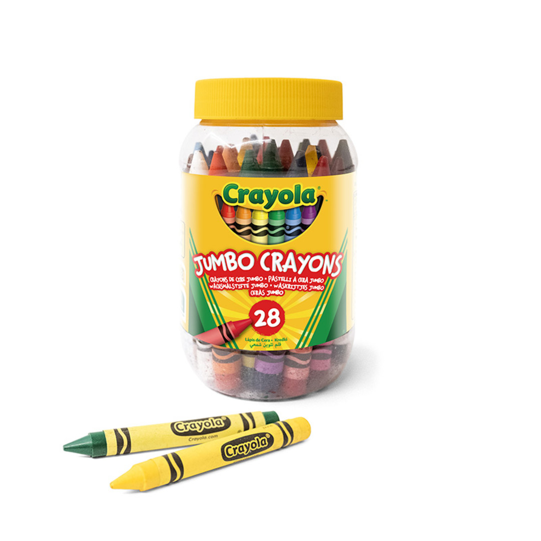 • COLORA CON I PASTELLI A CERA CRAYOLA: Lo strumento da disegno più classico al mondo, quello con cui sono cresciute generazioni di bambini; colori vivi e brillanti che ispireranno l'immagine e la creatività di tutti i bambini! Pastelli in formato jumbo con colori intensi, vivaci e coprenti, facili da stendere per tante tecniche di coloritura! Fusto largo per una più facile impugnatura anche dalle manine dei più piccoli. Racchiusi in un pratico barattolo con coperchio che permette di mantenere tutto in ordine!