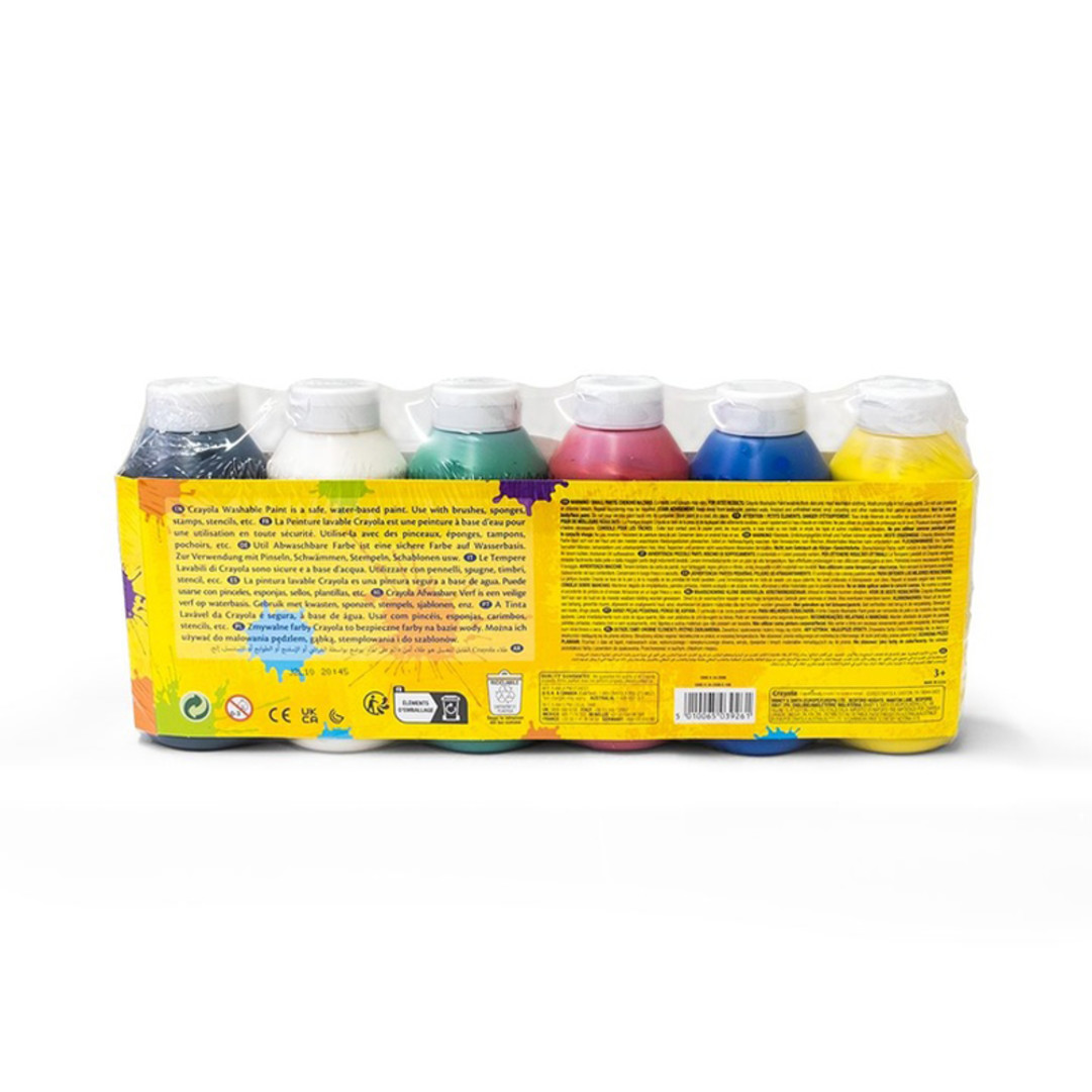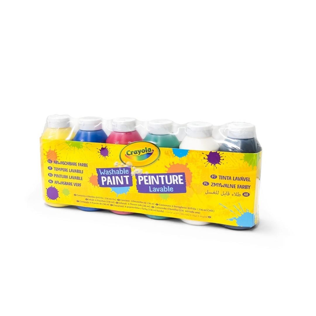 • TEMPERE CRAYOLA: 6 Tempere in flaconi da 238 ml con tappo richiudibile, pronte all'uso6