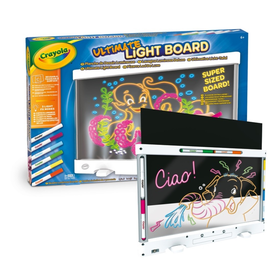 • LAVAGNA CRAYOLA: Una super lavagna luminosa e cancellabile che permette di trasformare i disegni in modo unico e splendente.