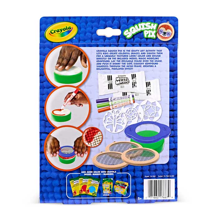 • CRAYOLA SQUISH PIX: Includes reusable frames, markers, stencils, a squish base, and Model Magic—everything kids need to create squishy 3D art.